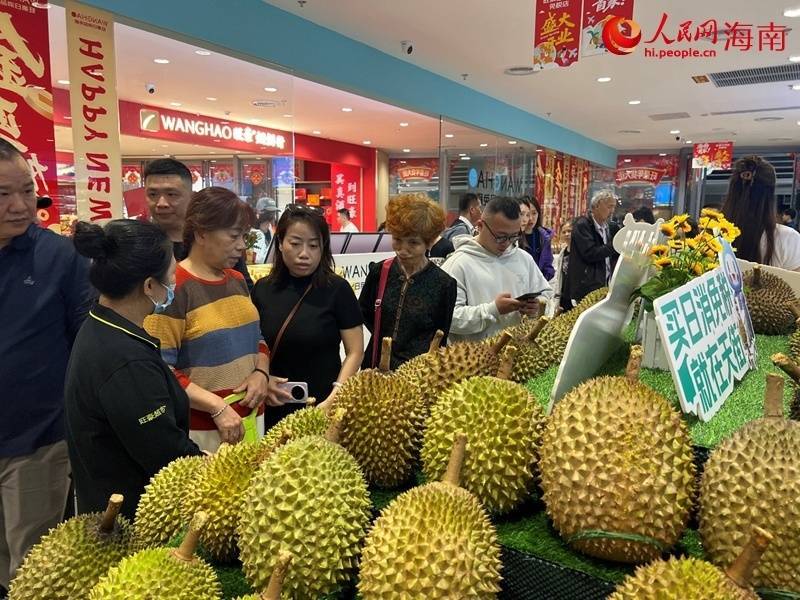 铺张者在海口天街旺豪日消品免税店内选购榴莲。东说念主民网记者 李学山摄