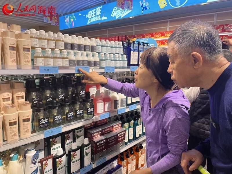 铺张者在海口天街旺豪日消品免税店内选购日化品。东说念主民网记者 符小叶摄